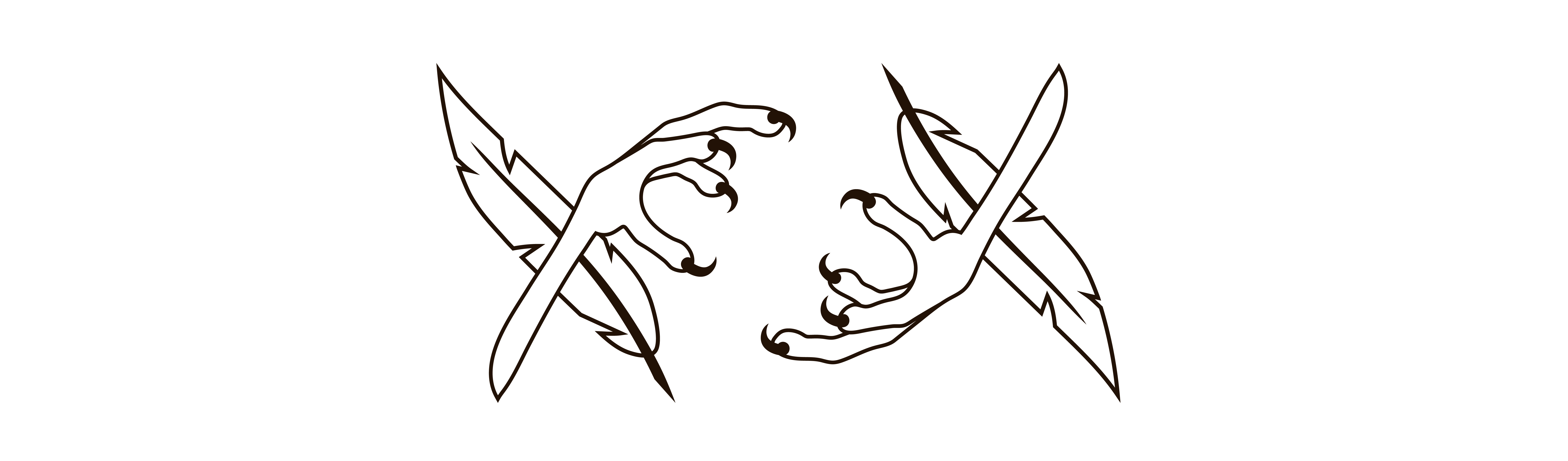 Основным стилеобразующим элементом является иллюстрация лапы и пера, которые образуют крест.